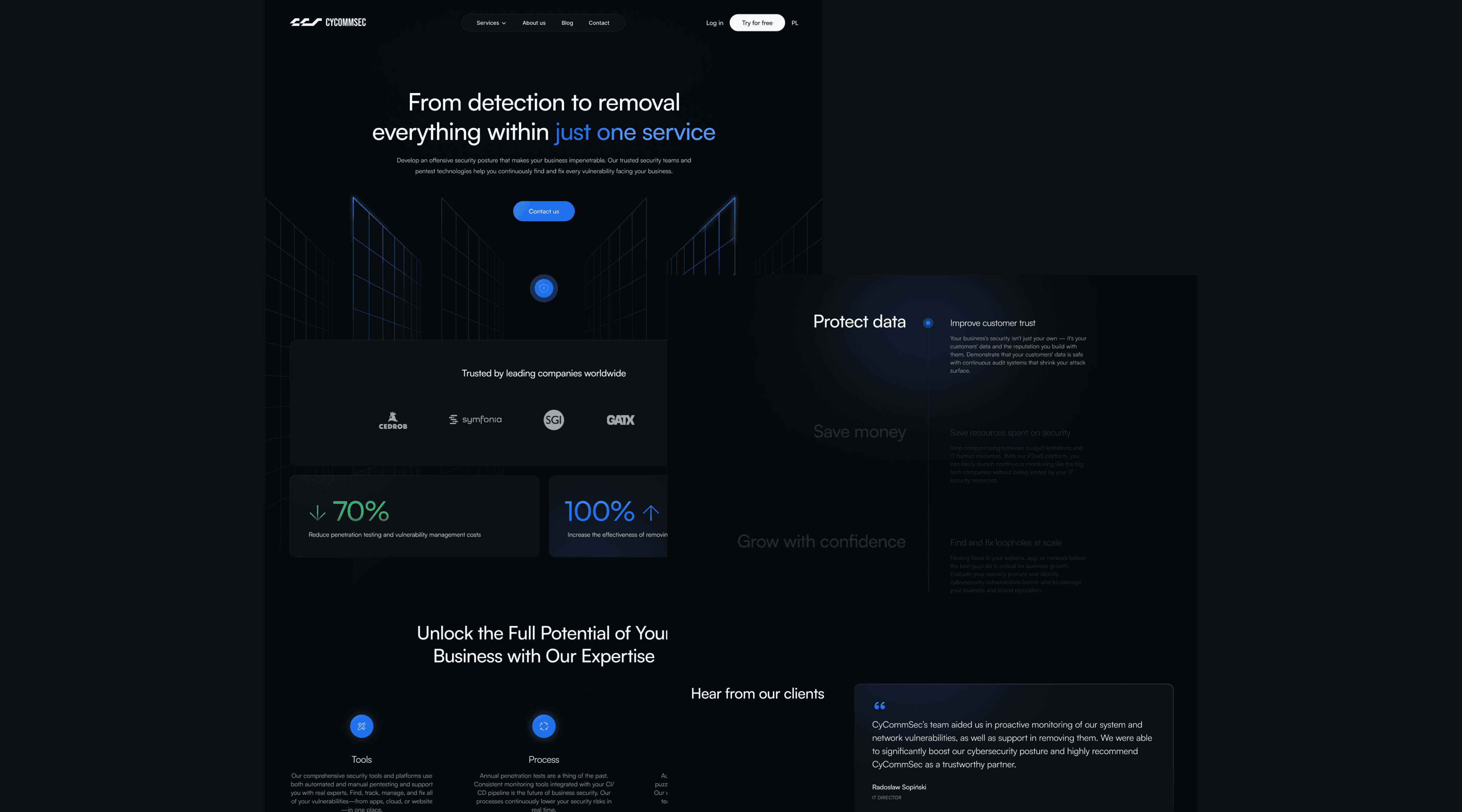 Communicate CycommSec’s complex services while reflecting their values of trust and professionalism. The main challenge was to simplify technical content, establish a clear visual hierarchy, and create a modern, innovative look and feel.