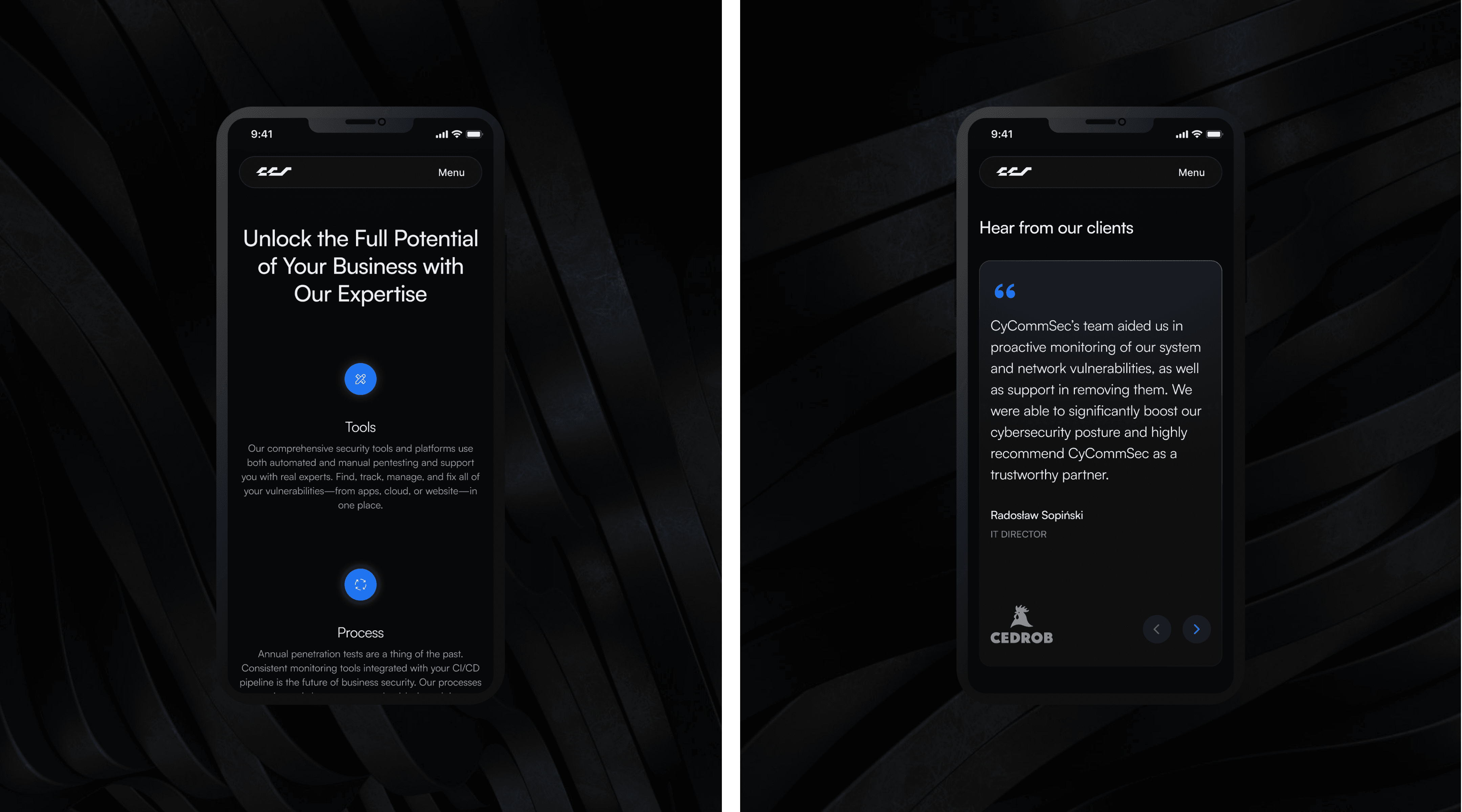 CycommSec offers accessible, effective cybersecurity solutions for developers and entrepreneurs. They asked me to help redesign their website to clearly showcase their services and values, while reinforcing their image as a reliable business partner.